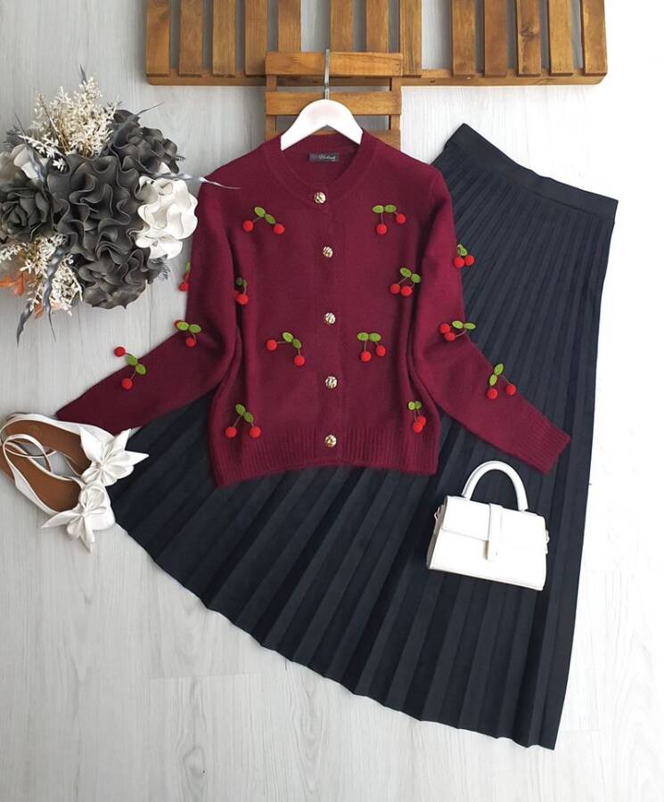 SALDE KİRAZLI ÖNÜ DÜĞMELİ YUMOŞ HIRKA 8161-04-BORDO
