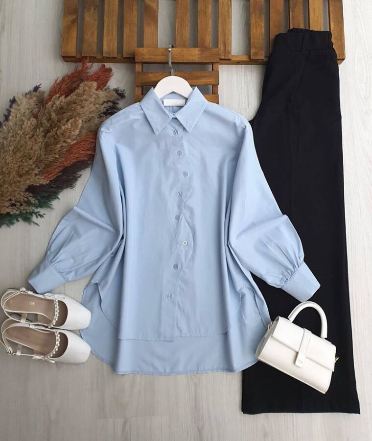SEMAHE ZİKZAK DÜĞMELİ GÖMLEK TUNİK 5668-10-MAVİ