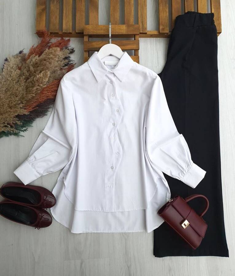 SEMAHE ZİKZAK DÜĞMELİ GÖMLEK TUNİK B3-5 5668-20-BEYAZ