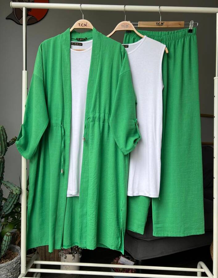 SEPN BELİ BAĞCIKLI KAP İÇLİK PANTOLON KETEN ÜÇLÜ TAKIM D7-1481-54-BENETTON
