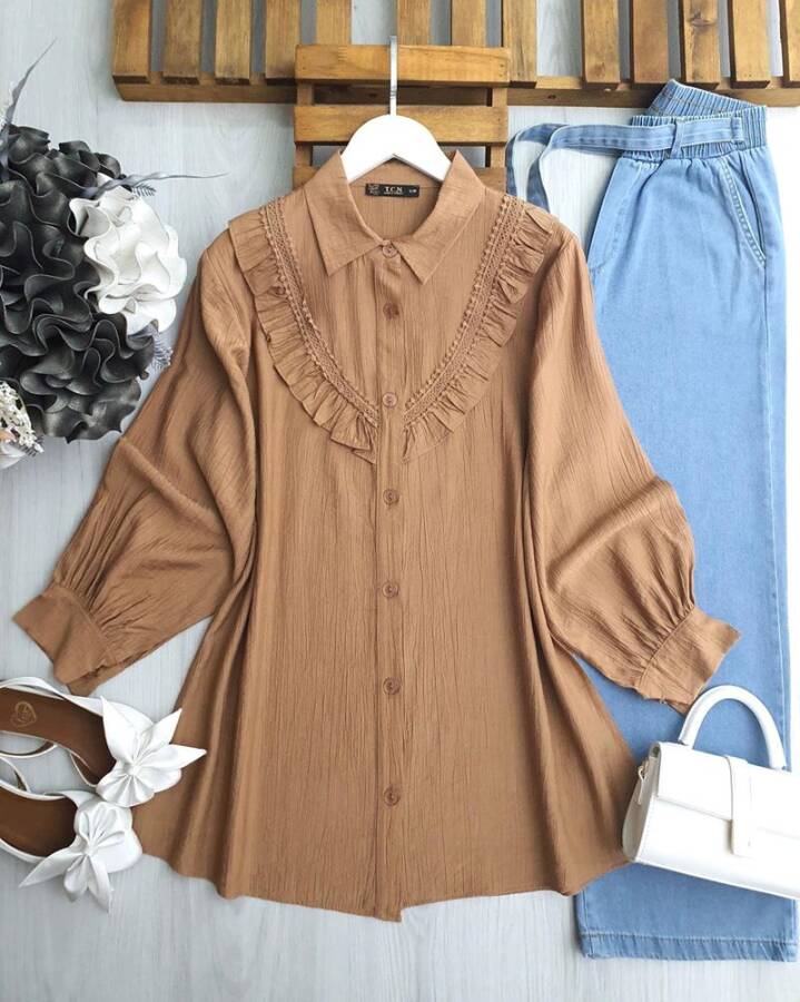 SİHYA FIRFIRLI GÜPÜRLÜ GÖMLEK TUNİK D3-5590-48-BİSKÜVİ