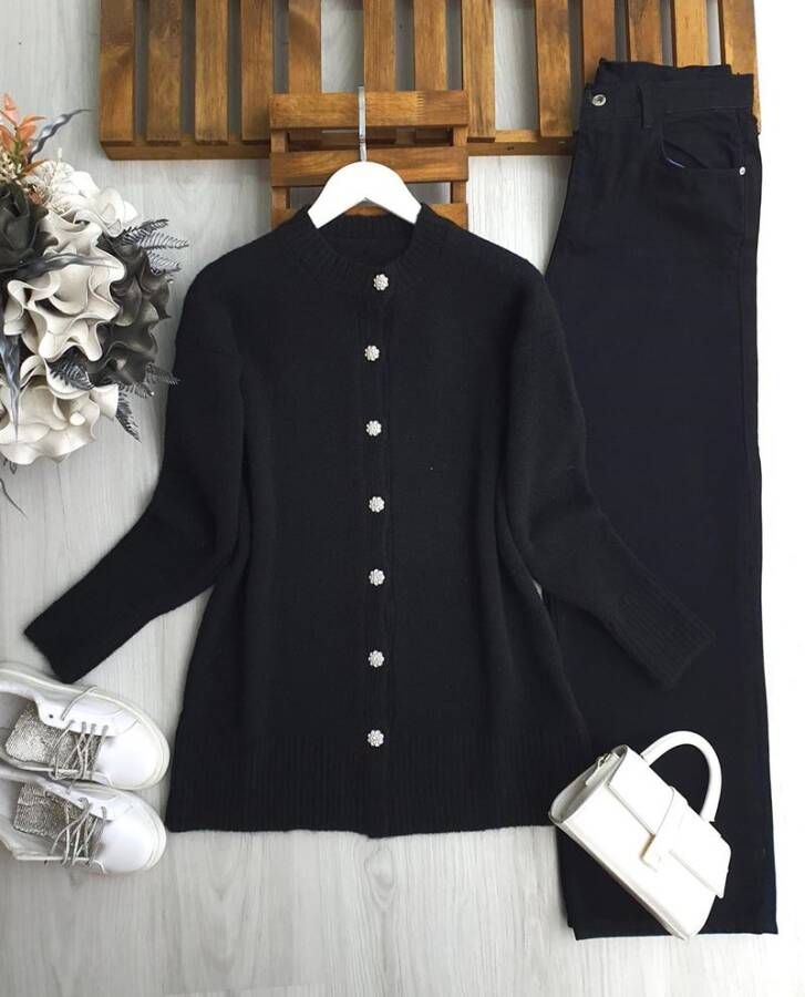 SOCSE TAŞLI DÜĞMELİ YUMOŞ HIRKA 8179-01-SİYAH