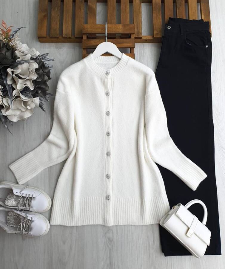 SOCSE TAŞLI DÜĞMELİ YUMOŞ HIRKA B7-5-8179-20-BEYAZ