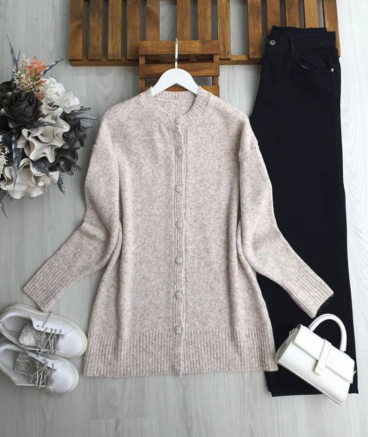 SOCSE TAŞLI DÜĞMELİ YUMOŞ HIRKA 8179-34-BEJ