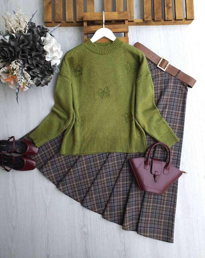SOGES ÇİÇEKLİ ŞARDONLU KAZAK 8198-07-YEŞİL