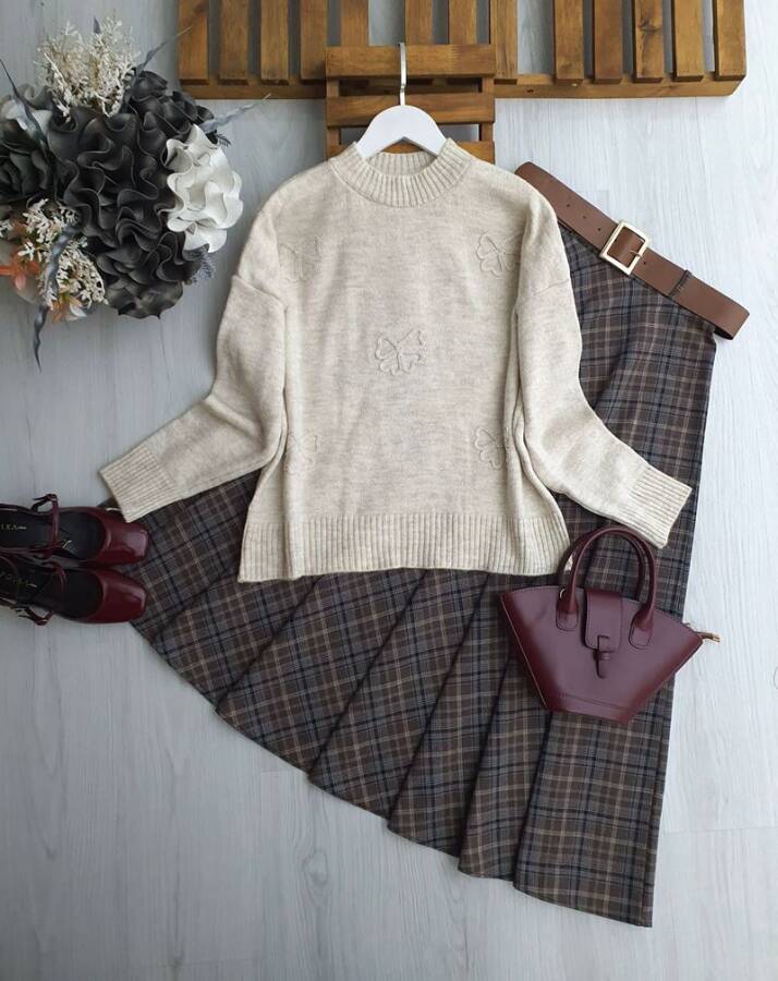 SOGES ÇİÇEKLİ ŞARDONLU KAZAK 8198-22-TAŞ