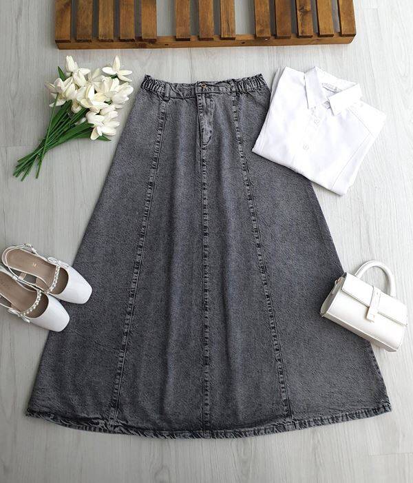 SUNF BEL ARKADAN LASTİKLİ KOT ETEK 6119-26-GRİ