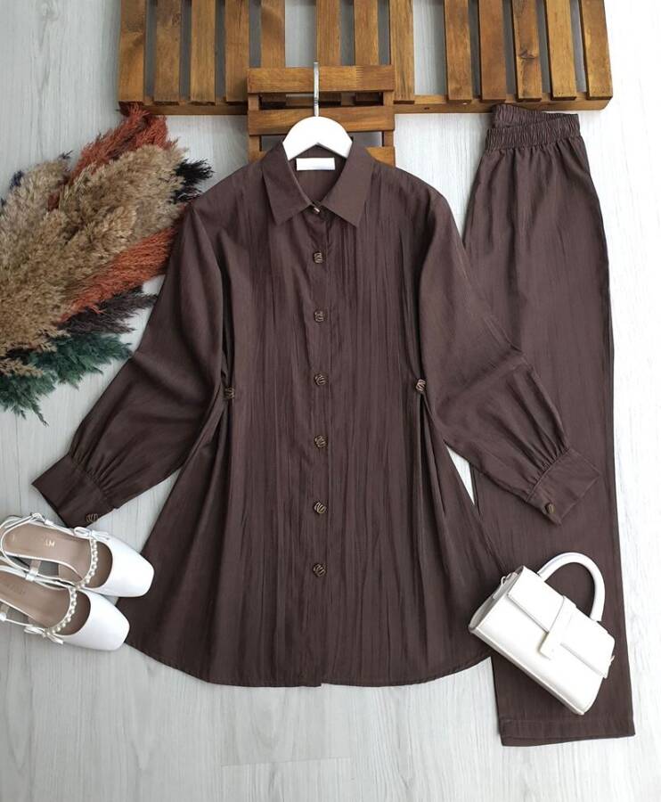 SURNE BEL YANLARDAN AYARLANABİLİR DÜĞMELİ İKİLİ TAKIM B2-1-1718-37-KAHVE