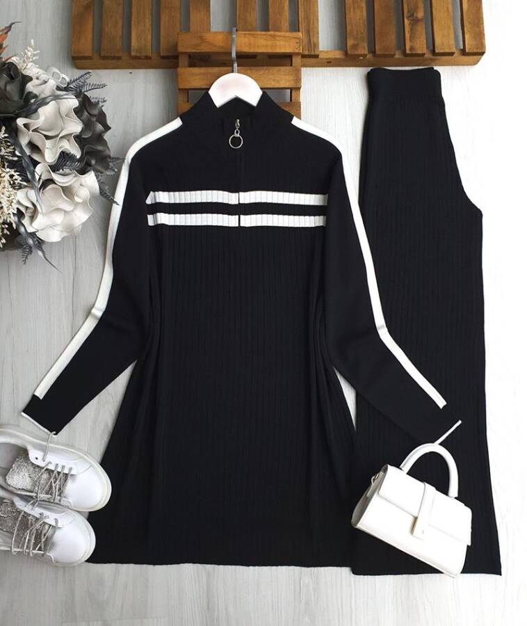 TAND YARIM FERMUARLI ŞERİTLİ TRİKO TAKIM A6-6-8153-01-SİYAH