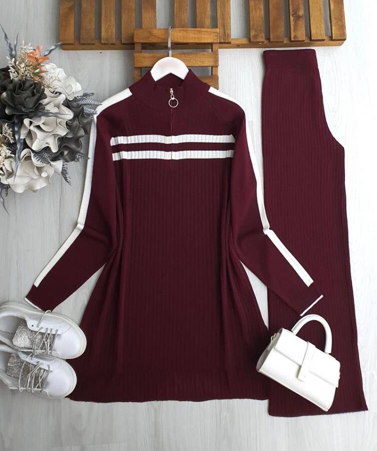 TAND YARIM FERMUARLI ŞERİTLİ TRİKO TAKIM A6-6-8153-04-BORDO