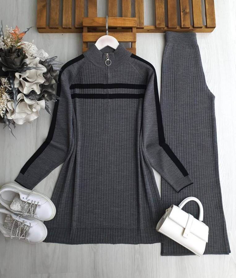 TAND YARIM FERMUARLI ŞERİTLİ TRİKO TAKIM A6-6-8153-58-FÜME