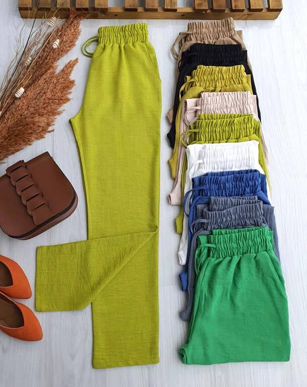 TECE BELİ LASTİKLİ BAĞCIKLI CEPLİ KETEN PANTOLON B9-5-6047-60-FISTIK YEŞİLİ