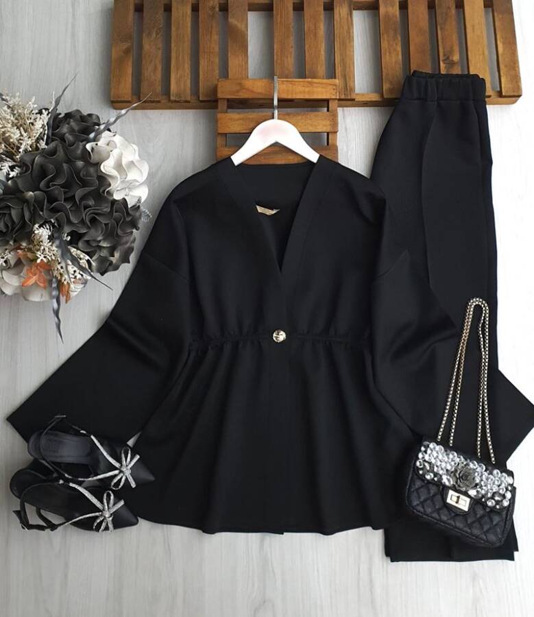 KOFS BELİ LASTİKLİ TEK DÜĞME ETEKLİ TAKIM A6-3-1687-01-SİYAH