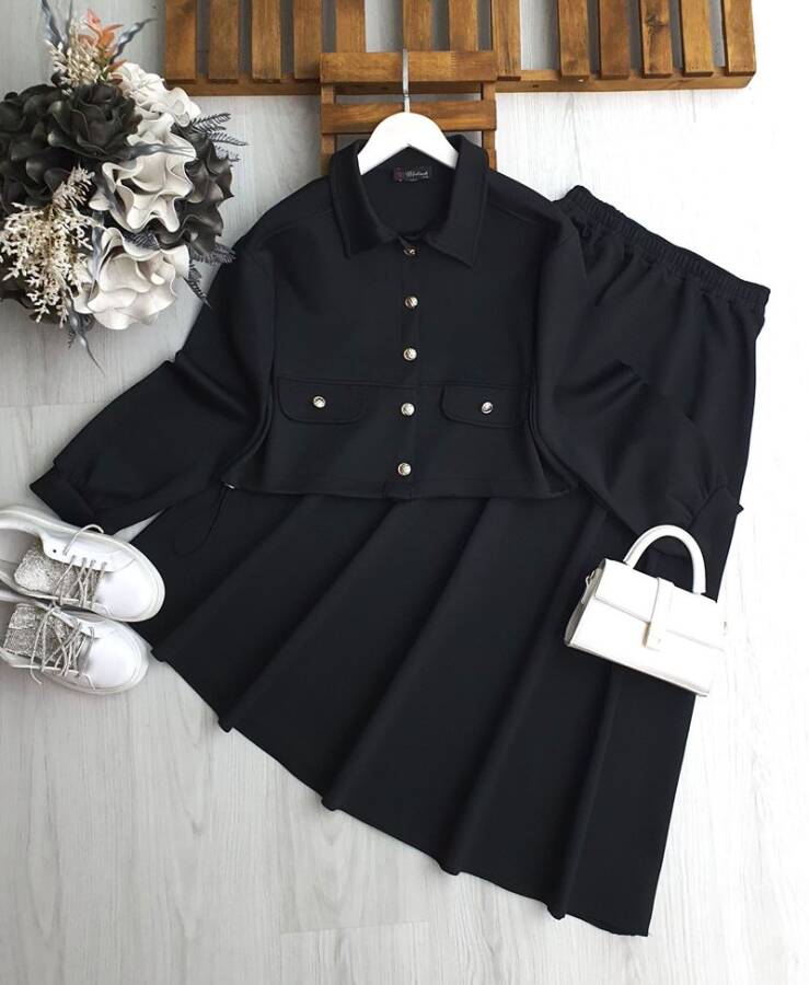 TOYE METAL DÜĞMELİ CEP KAPAKLI ETEKLİ İKİLİ TAKIM B8-2-1672-01-SİYAH