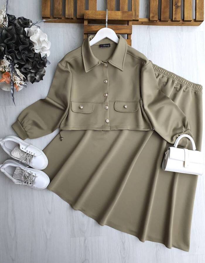TOYE METAL DÜĞMELİ CEP KAPAKLI ETEKLİ İKİLİ TAKIM B8-2-1672-09-HAKİ