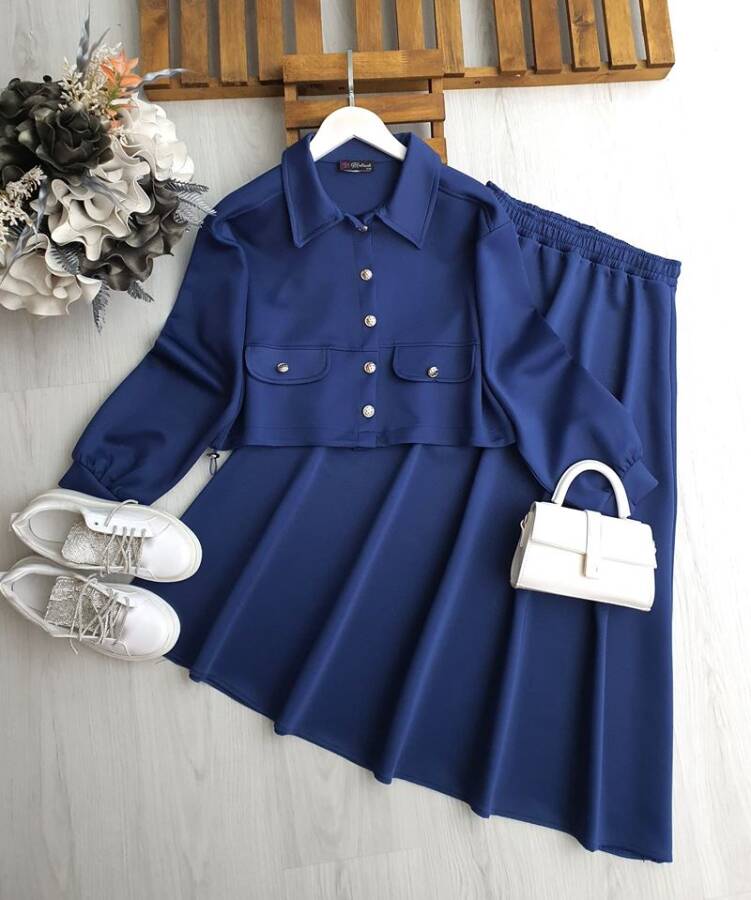 TOYE METAL DÜĞMELİ CEP KAPAKLI ETEKLİ İKİLİ TAKIM B7-4-1672-14-SAKS