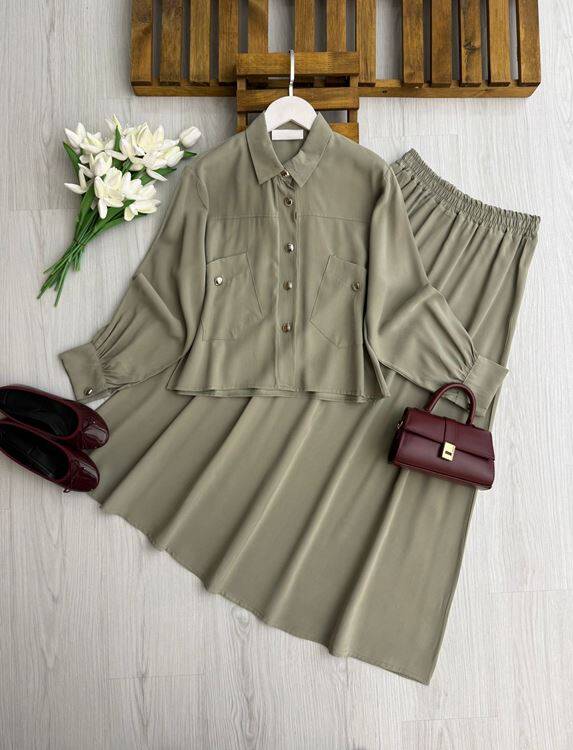 TULESY ÇAPRAZ CEPLİ TENSEL ETEKLİ TAKIM A3-4 1725-09-HAKİ