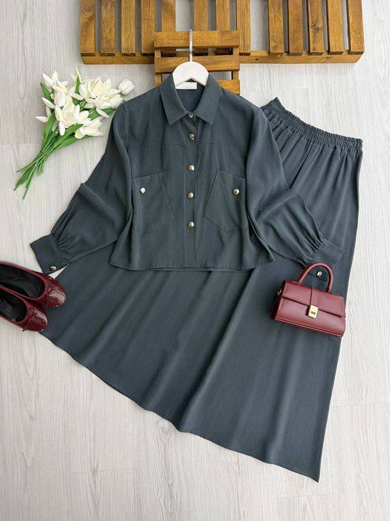 TULESY ÇAPRAZ CEPLİ TENSEL ETEKLİ TAKIM 1725-58-FÜME