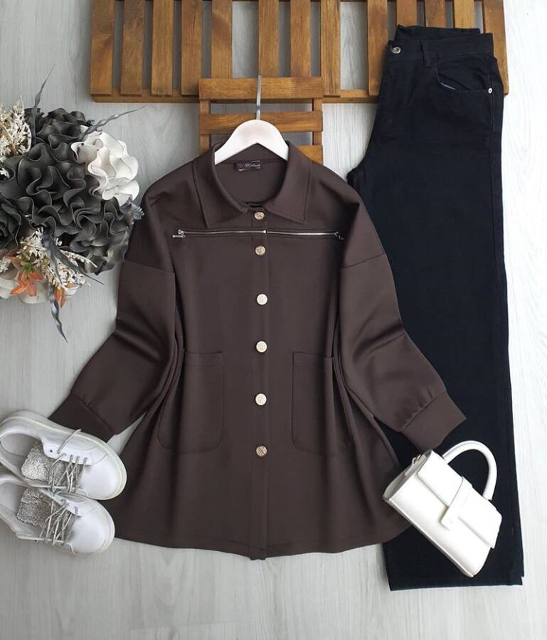 UDHA ÖN FERMUAR DETAYLI RAHAT KALIP TUNİK 5651-37-KAHVE