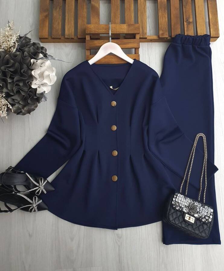 UDSEY BELİ DİKİŞLİ GOLD DÜĞMELİ İKİLİ TAKIM 1694-12-LACİVERT