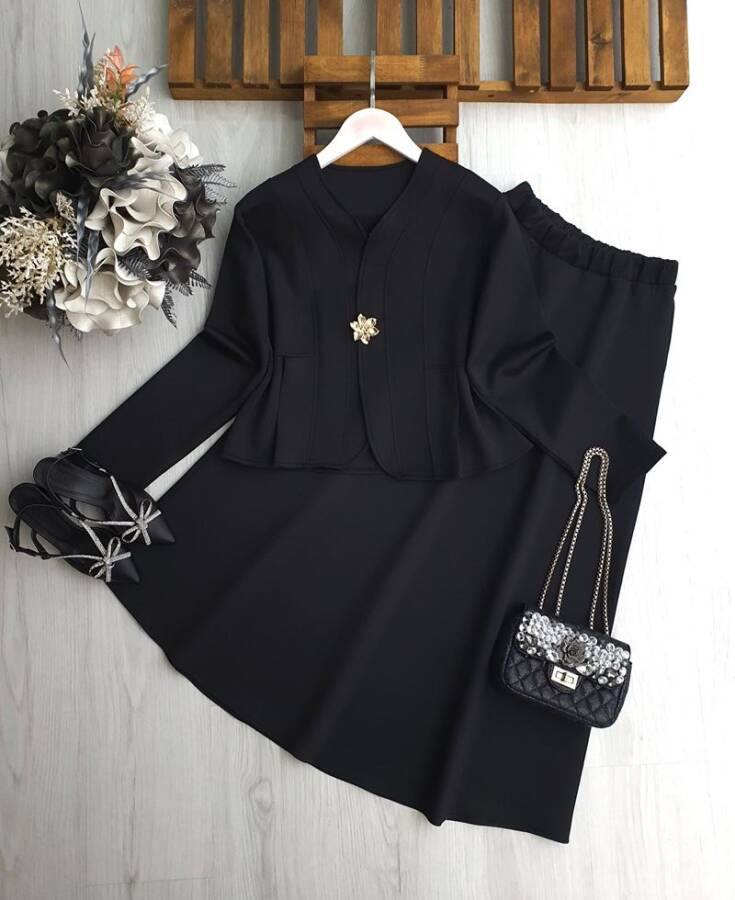 UDSEY TOKA DÜĞMELİ PRENSES DİKİŞLİ ETEKLİ İKİLİ TAKIM B1-2-1695-01-SİYAH