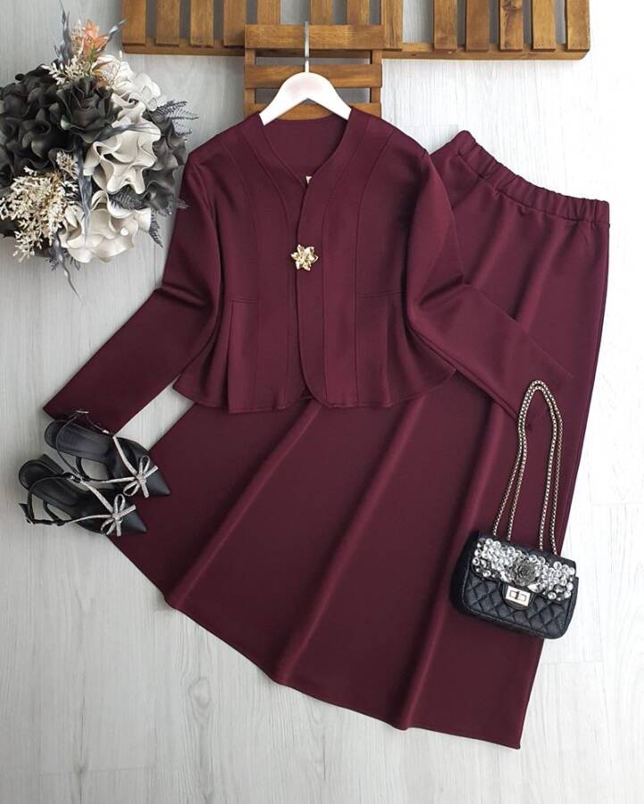 UDSEY TOKA DÜĞMELİ PRENSES DİKİŞLİ ETEKLİ İKİLİ TAKIM B1-2-1695-04-BORDO
