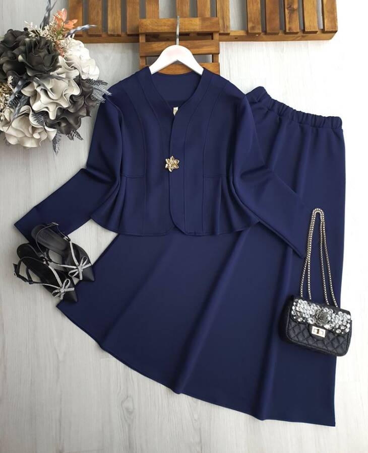 UDSEY TOKA DÜĞMELİ PRENSES DİKİŞLİ ETEKLİ İKİLİ TAKIM B1-2-1695-12-LACİVERT