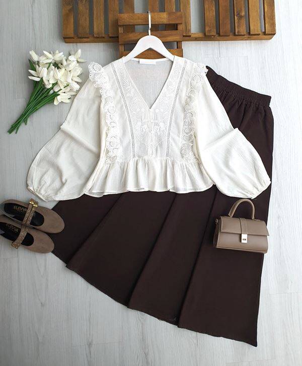 UGEW NAKIŞLI GÜPÜRLÜ FIRFIRLI GÖMLEK 5725-20-BEYAZ