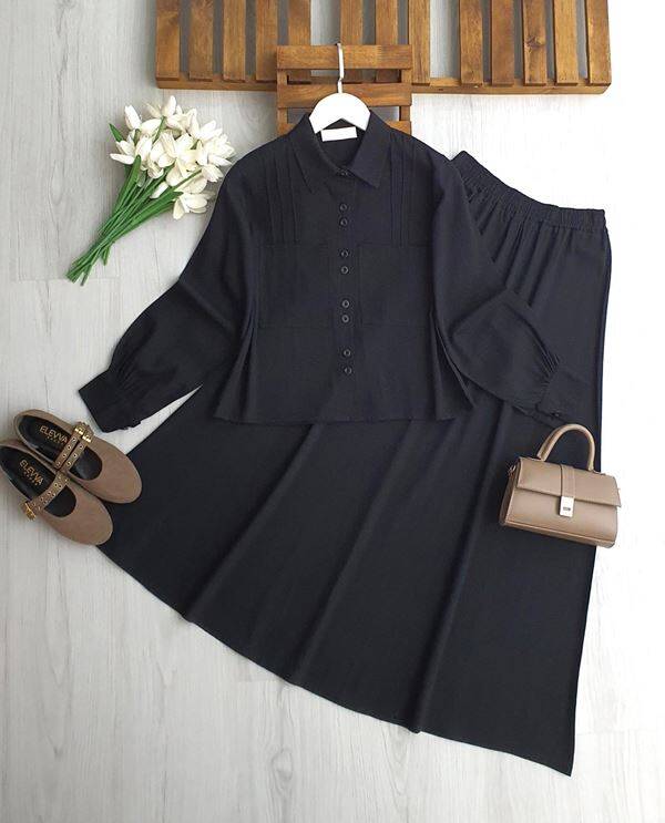 UGPE PİLİ ŞERİTLİ ÇİFT CEP KETEN ETEKLİ TAKIM 1754-01-SİYAH