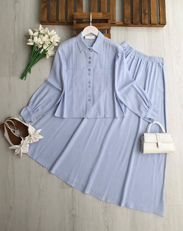 UGPE PİLİ ŞERİTLİ ÇİFT CEP KETEN ETEKLİ TAKIM 1754-10-MAVİ