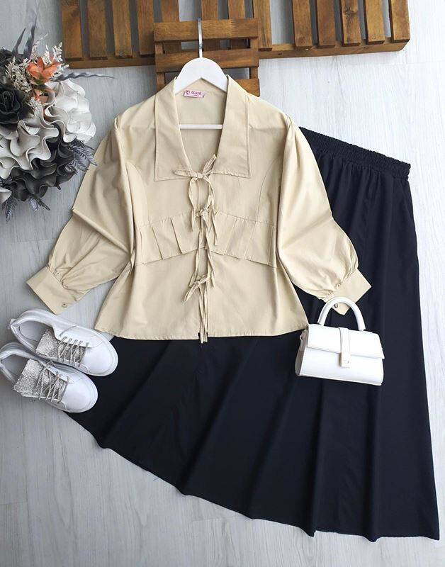 OVSELG CEPLİ PİLELİ BALIKSIRTI ETEK A6-1-6091-34-BEJ