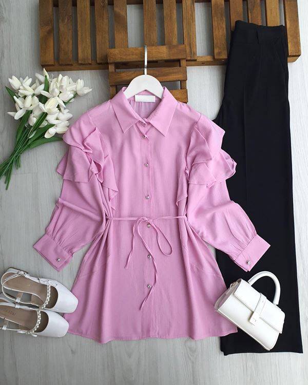 UMEY OMUZ FIRFIRLI BÜRÜMCÜK GÖMLEK TUNİK B5-3-5663-05-PUDRA