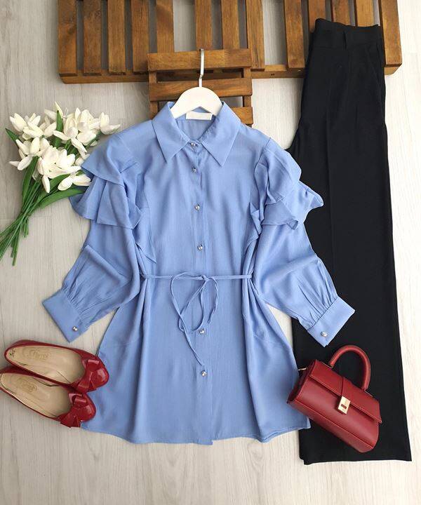 UMEY OMUZ FIRFIRLI BÜRÜMCÜK GÖMLEK TUNİK B5-3-5663-10-MAVİ