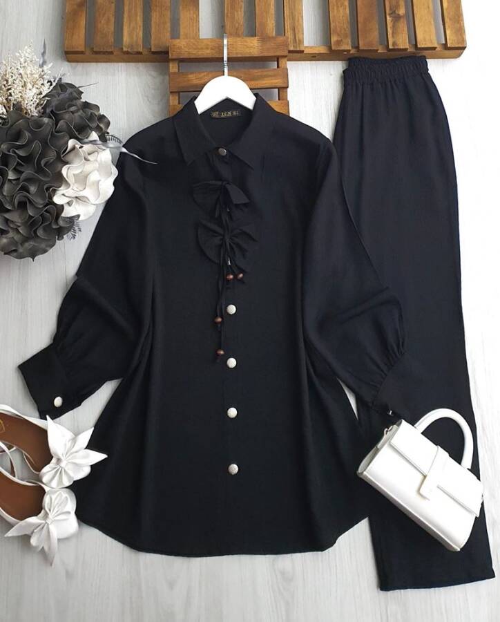 UMNA ÖNÜ İPLİ FİYONKLU İKİLİ TAKIM B11-4-1646-01-SİYAH
