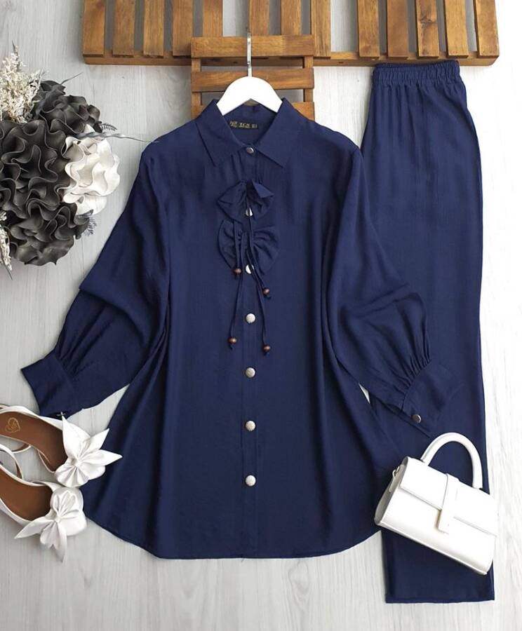 UMNA ÖNÜ İPLİ FİYONKLU İKİLİ TAKIM B11-4-1646-12-LACİVERT