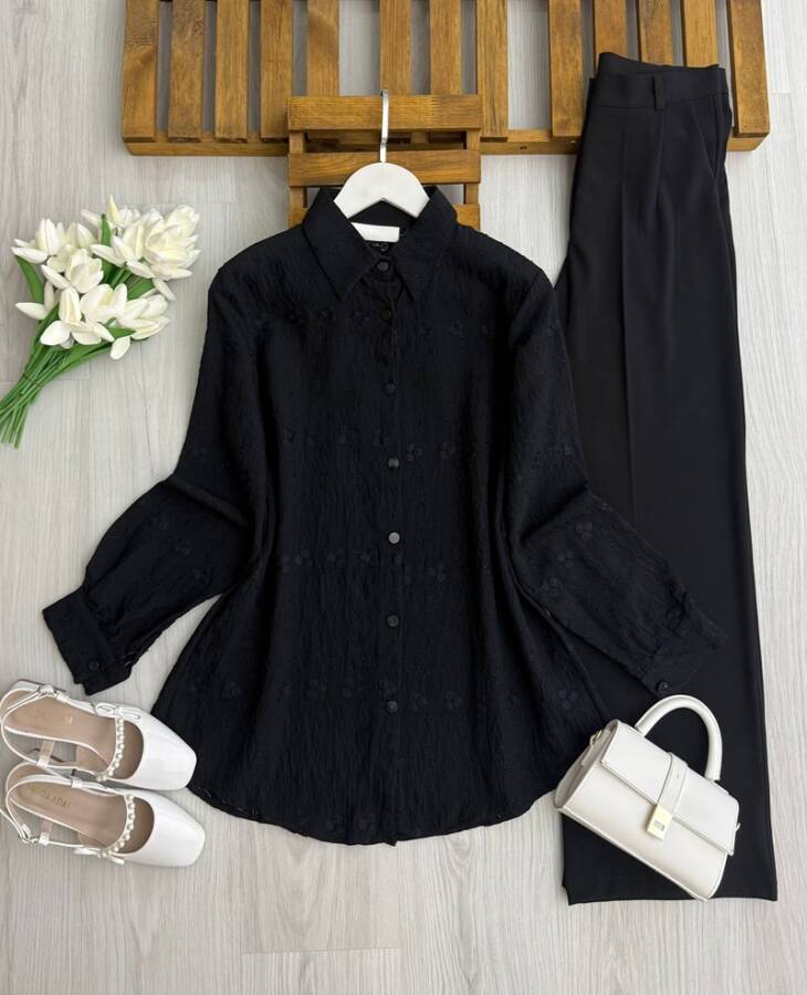 UNGE KENDİNDEN DESENLİ JAKARLI GÖMLEK TUNİK B8-5-5682-01-SİYAH
