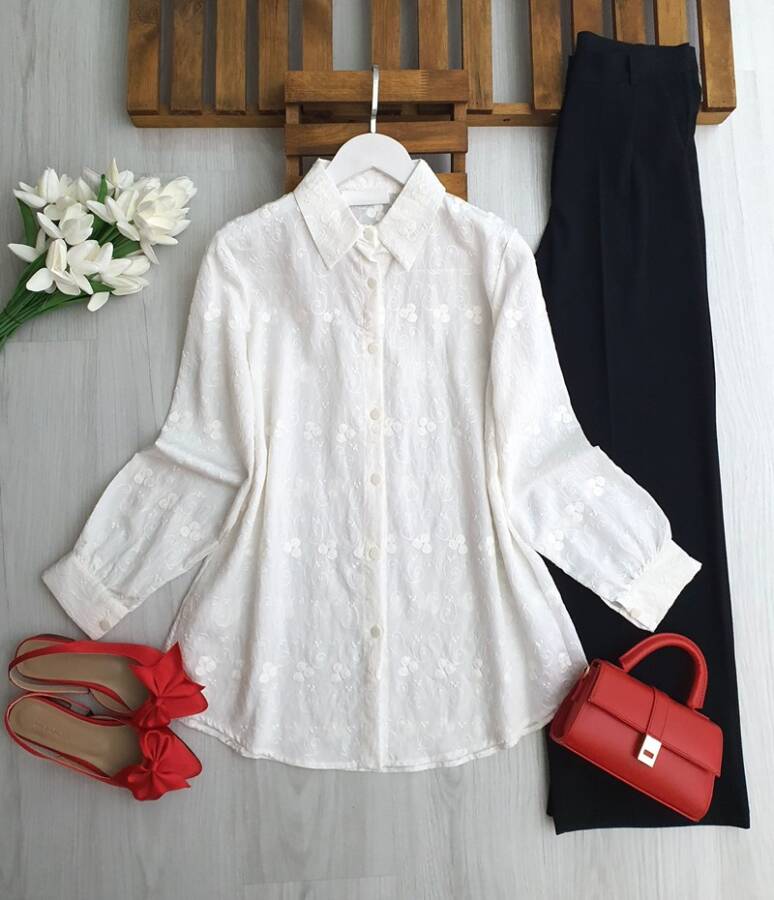 UNGE KENDİNDEN DESENLİ JAKARLI GÖMLEK TUNİK 5682-20-BEYAZ