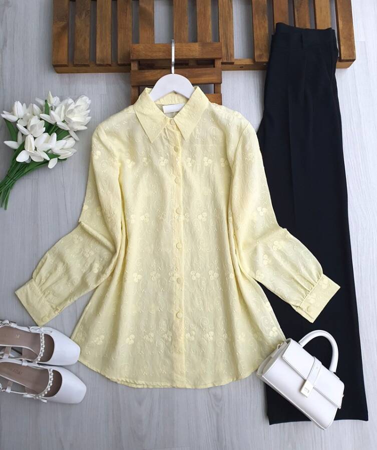 UNGE KENDİNDEN DESENLİ JAKARLI GÖMLEK TUNİK B8-5-5682-23-SARI