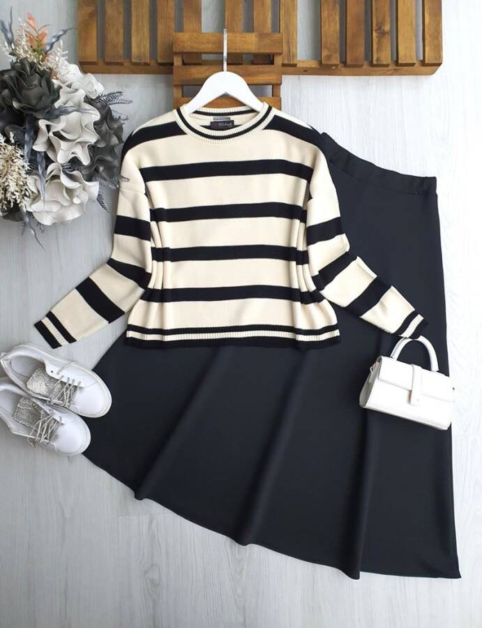 USEW KALIN ÇİZGİLİ TRİKO KAZAK 8178-01-SİYAH