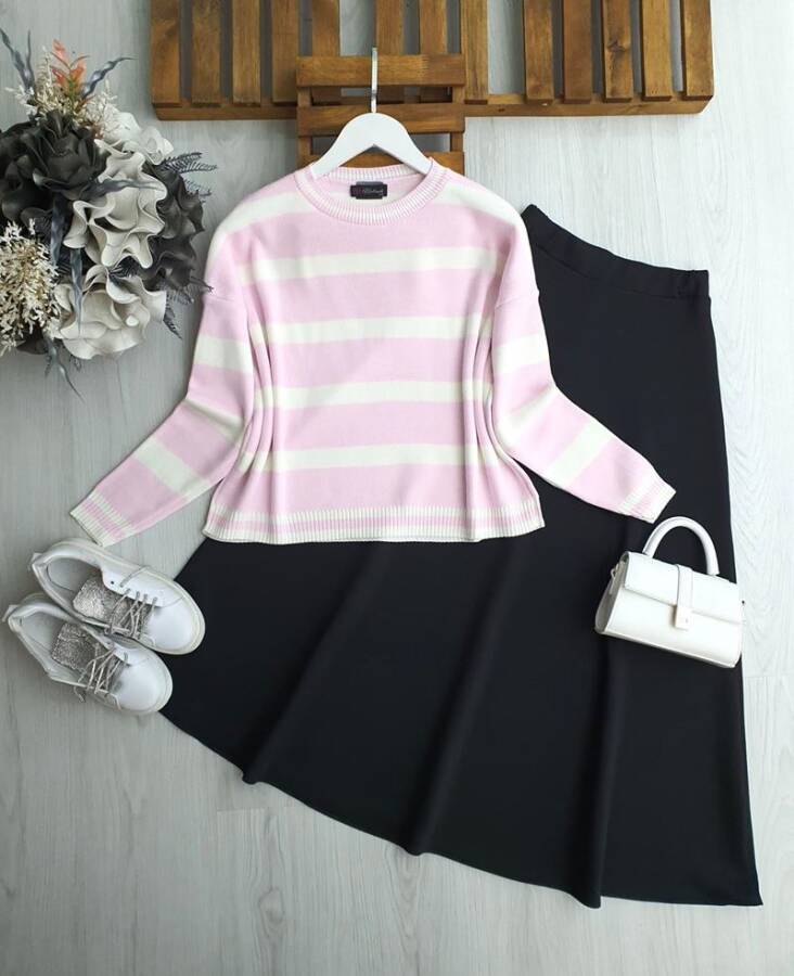USEW KALIN ÇİZGİLİ TRİKO KAZAK 8178-05-PUDRA