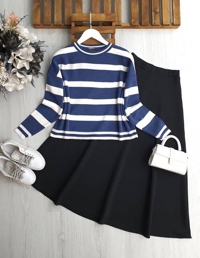 USEW KALIN ÇİZGİLİ TRİKO KAZAK 8178-11-İNDİGO