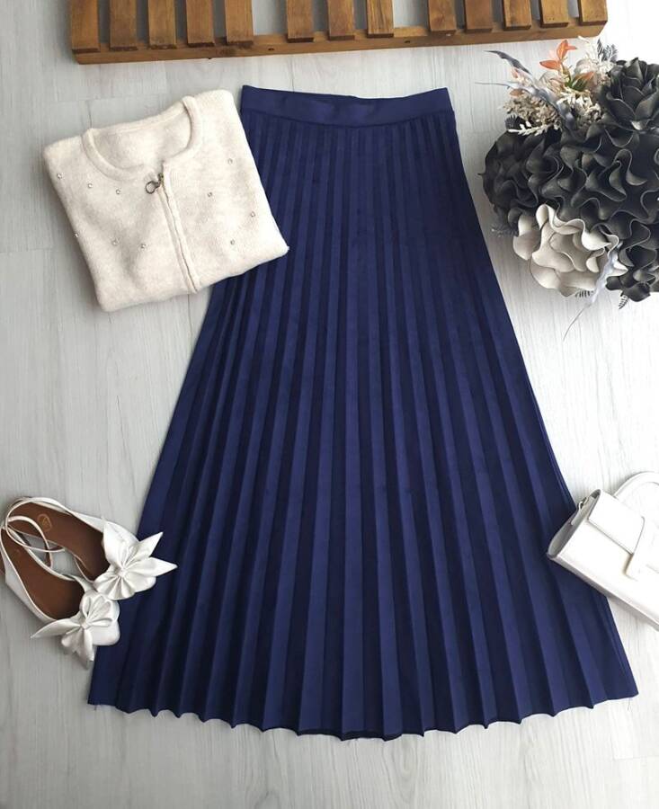 UVEDE PİLİSELİ BELİ LASTİKLİ SÜET ETEK B6-3-6081-12-LACİVERT