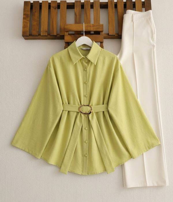 VAKDE SABİT TOKALI KEMERLİ GÖMLEK TUNİK 5723-08-MİNT