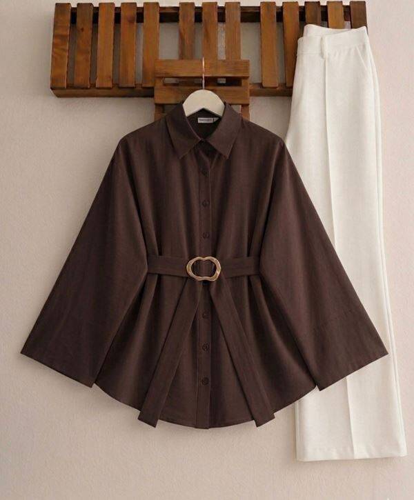 VAKDE SABİT TOKALI KEMERLİ GÖMLEK TUNİK 5723-37-KAHVE