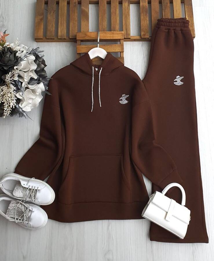 VEDKA TAŞ İŞLEMELİ KANGURU CEPLİ ÜÇ İPLİK TAKIM A10-6-1678-37-KAHVE