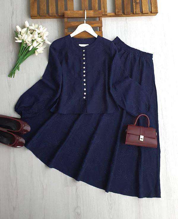 VEQA BRİT DÜĞMELİ KABARTMA DESEN ETEKLİ TAKIM 1758-12-LACİVERT
