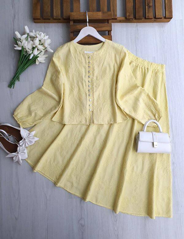 VEQA BRİT DÜĞMELİ KABARTMA DESEN ETEKLİ TAKIM 1758-23-SARI