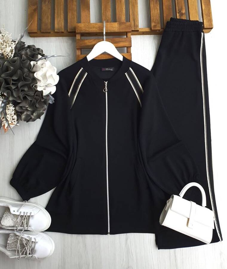 VİNE ŞERİTLİ CEPLİ ÖNÜ FERMUARLI İKİLİ TAKIM A5-1-1671-01-SİYAH