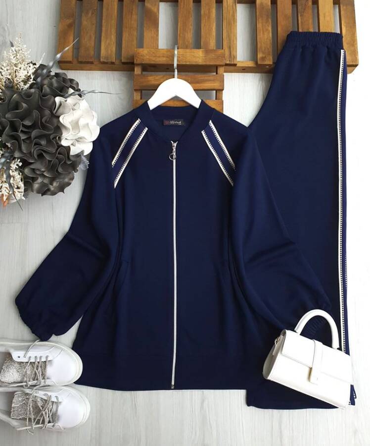 VİNE ŞERİTLİ CEPLİ ÖNÜ FERMUARLI İKİLİ TAKIM A5-1-1671-12-LACİVERT