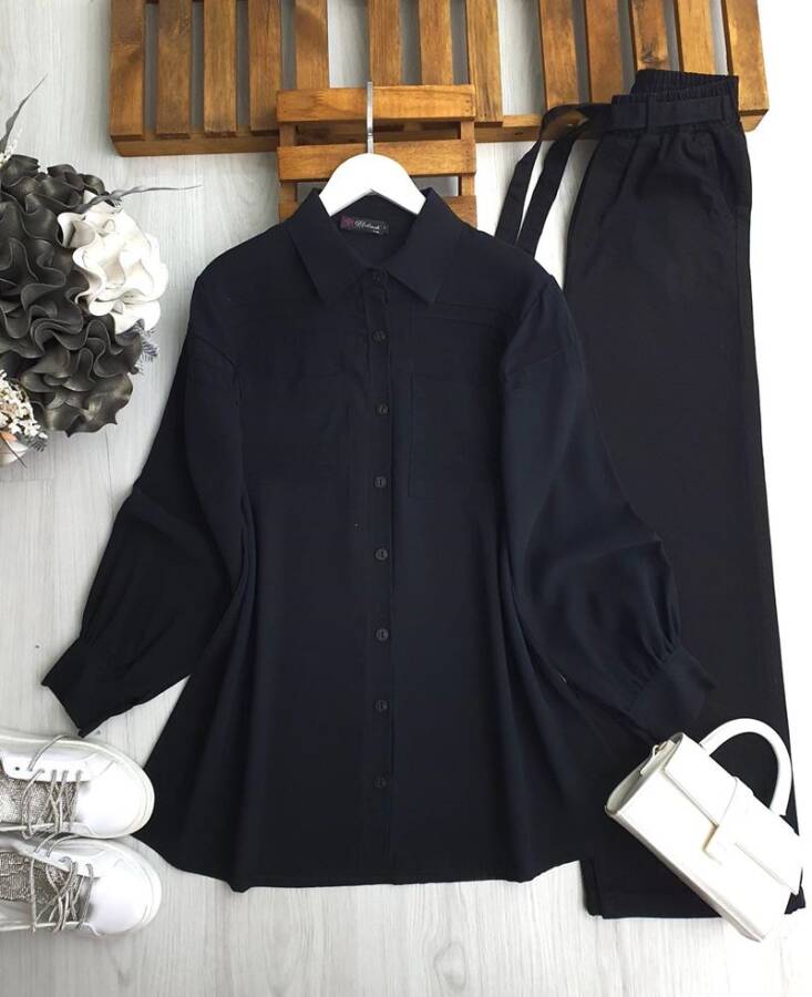 VOVR DİKİŞLİ ÇİFT CEP GÖMLEK TUNİK 5608-01-SİYAH